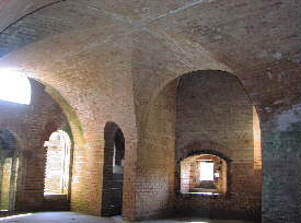 The bastions are connected to the courtyard by long arched tunnels which also provide access to